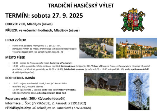 Přihlášky na telefonním čísle: 493 571 121 – paní Loumová nebo na e-mailu: libosovice@craj.cz